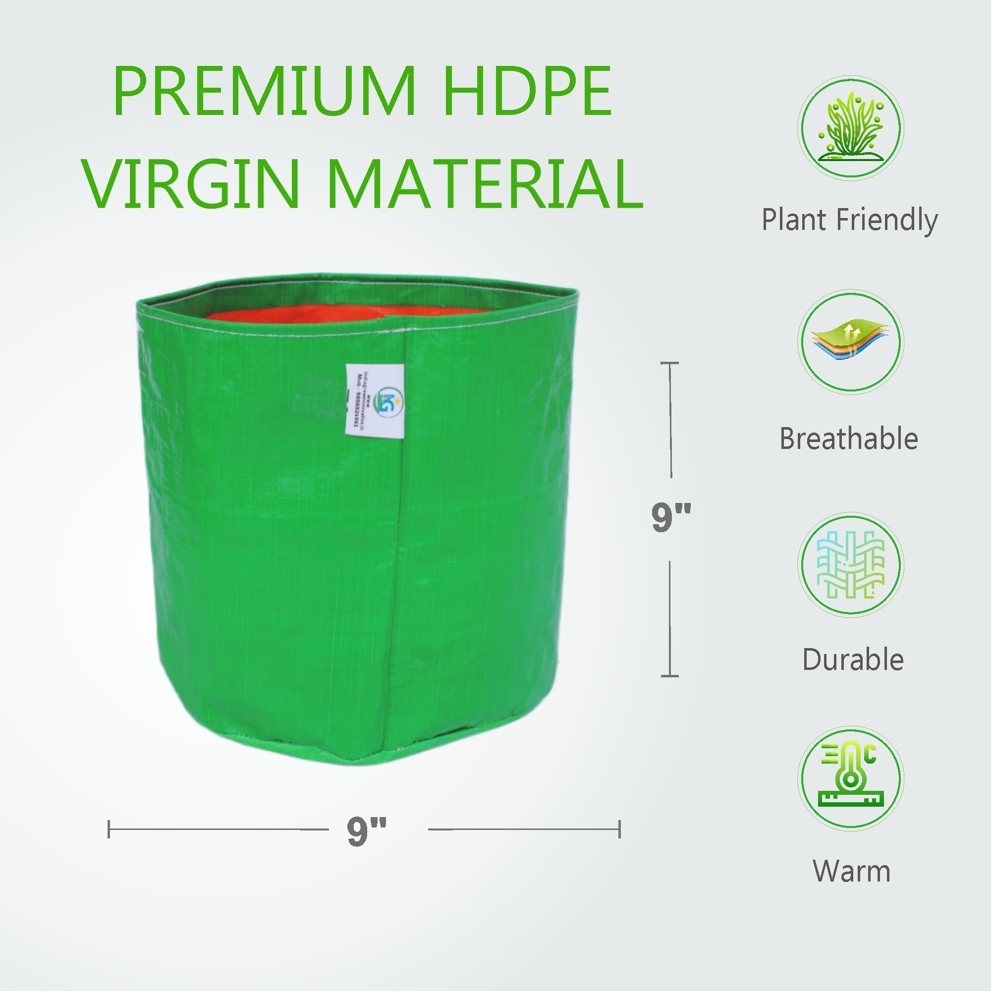 HDPE Grow Bag 9×9 Inch | 260 GSM | UV Protected