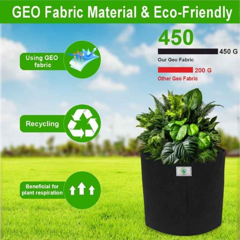 Its 8×8 inch size is perfect for growing herbs, small vegetables, and seasonal flowers. The breathable fabric ensures better root aeration, prevents root circling, and promotes a healthier root system. The 450 GSM material gives it excellent durability, allowing you to use it for multiple growing seasons.