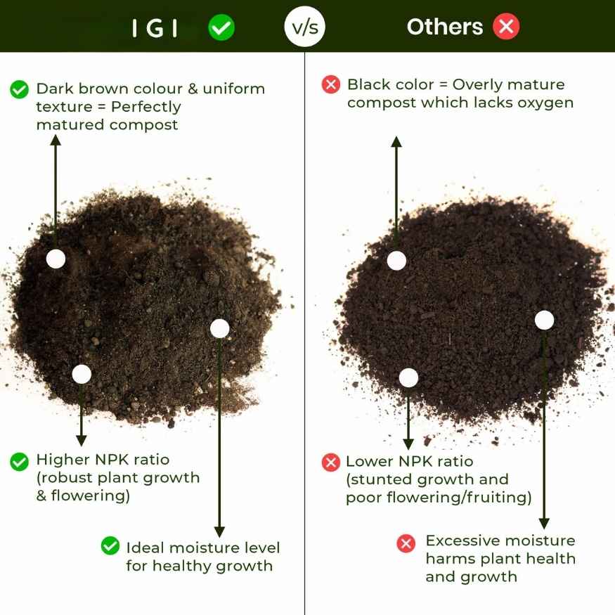 Our vermicompost is 100% chemical-free, safe for all types of plants, and suitable for both indoor & outdoor gardening. It improves soil aeration, retains moisture, and supplies plants with a balanced dose of nutrients like Nitrogen (N), Phosphorus (P), Potassium (K), and micronutrients.